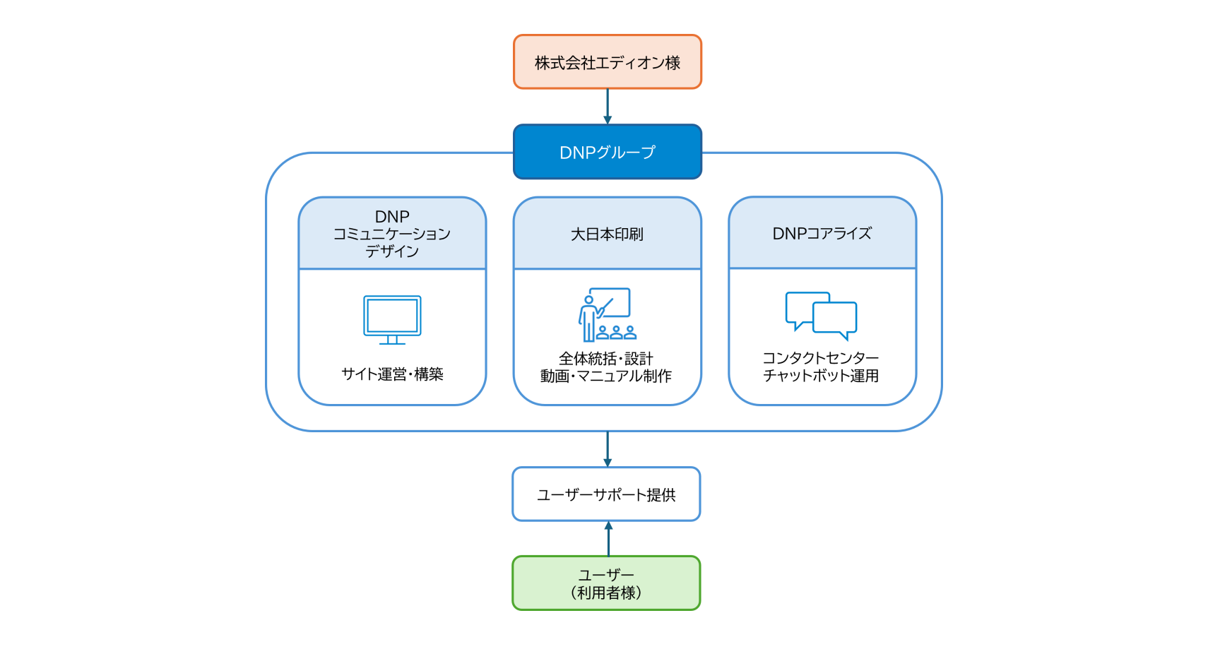 エディオン様のプロジェクトにおいて、DNPグループは以下の体制でソリューションを提供しました。